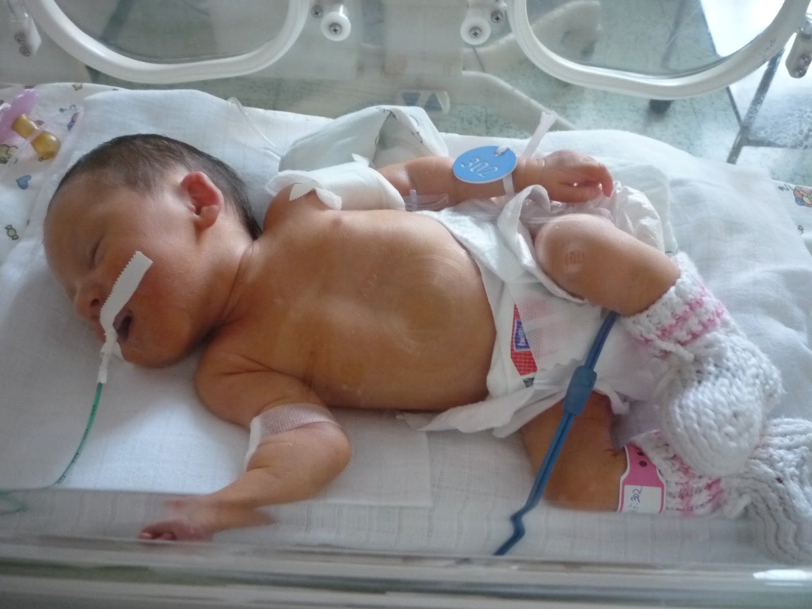 Prvních několik dní si pobyla v inkubátoru pod kyslíkem a infuzní terapií, a pak se ještě ohřála pod alpským sluníčkem, protože dostala žloutenku.